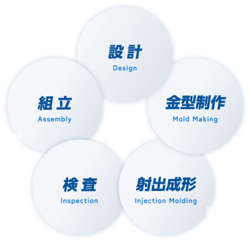 20トン(T) から360トン(T) までの成形機で様々な製品を製造